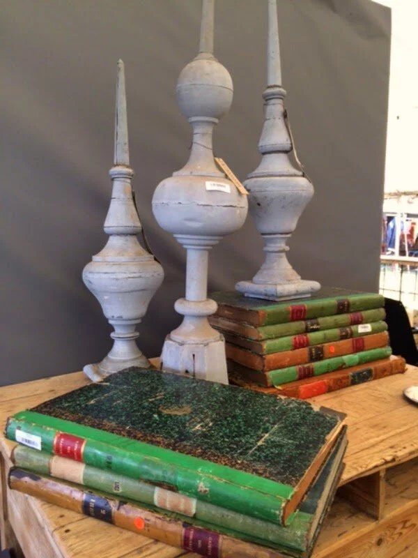 Large, beautifully bound books of old newspapers from the 1800's. Gorgeous and I could see them actually used as an impromptu side table on their own ... you know, casually sitting there waiting for you to open them, but instead with your glass of wine on top!