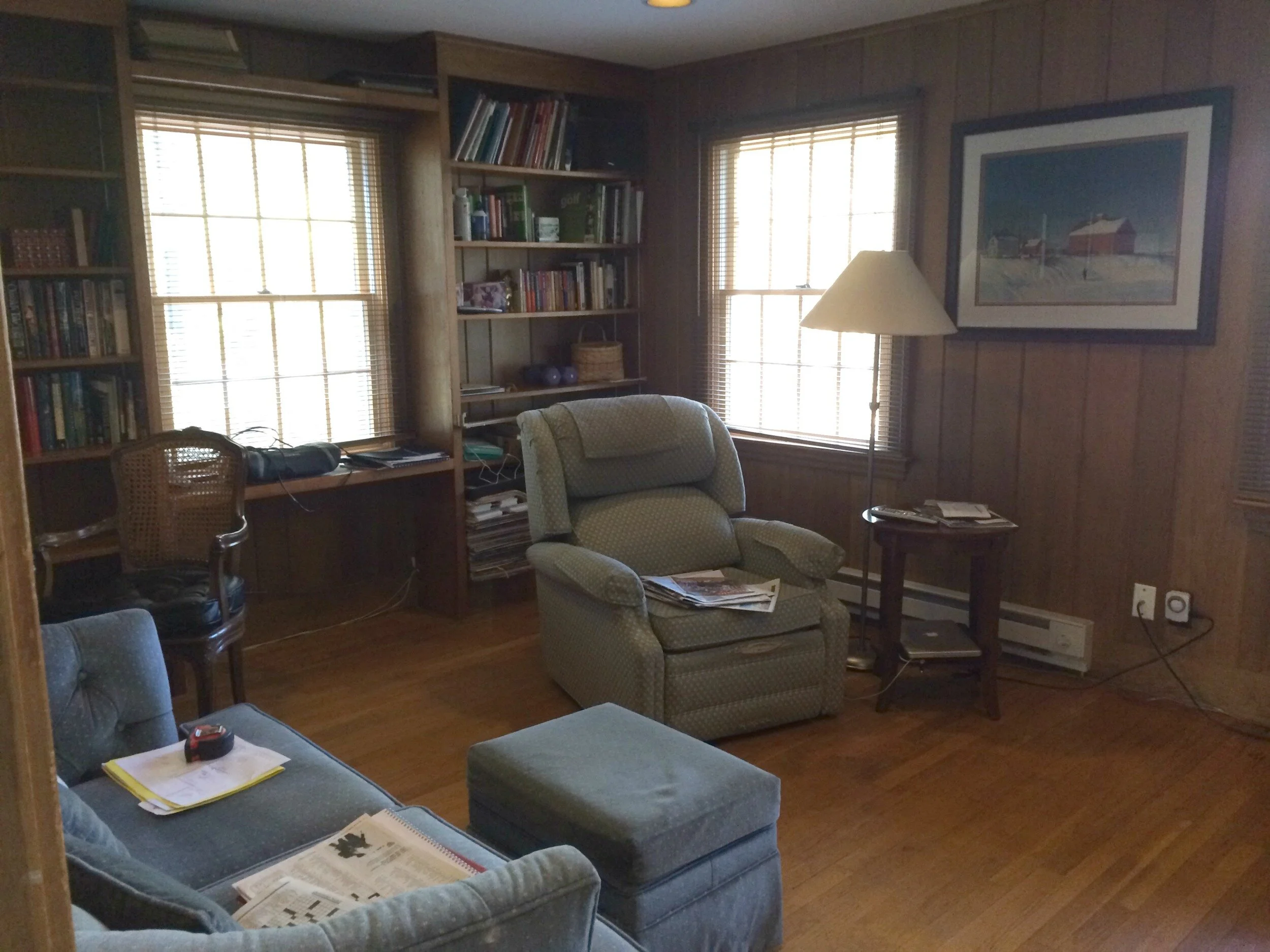 This is where it all began ... what the room looked like when we first saw our "new" house. You can imagine my mind started reeling with color and light needs immediately! Can we discuss the fact that by the time we found this house we had seen probably every house in Sherborn and neighboring towns that was for sale. And I was completely exhausted from decorating them all in my mind.