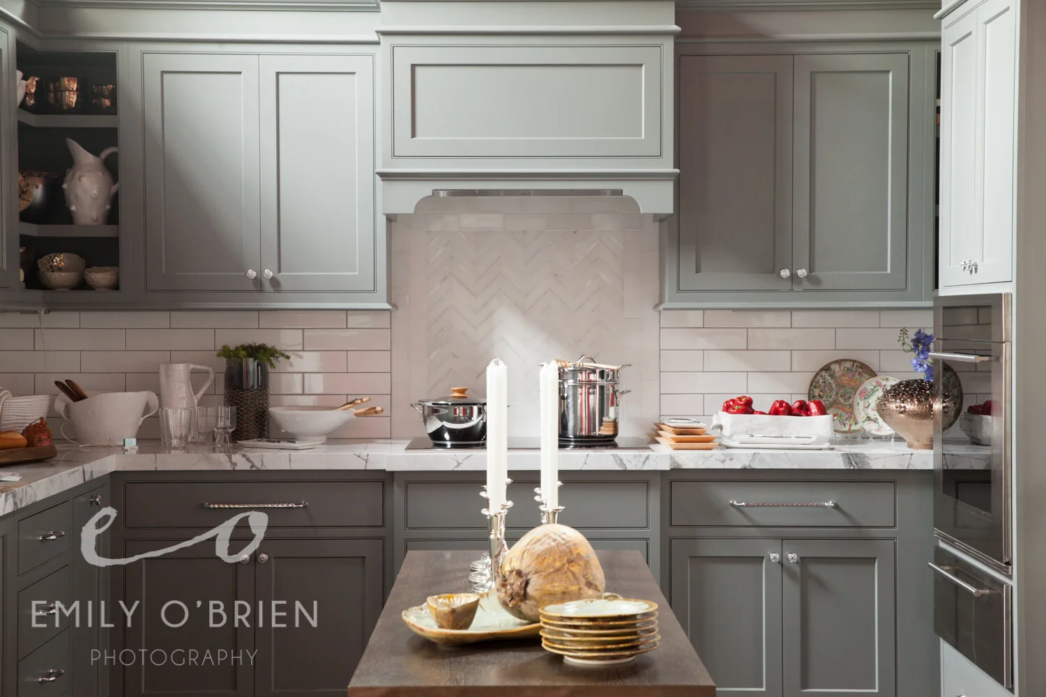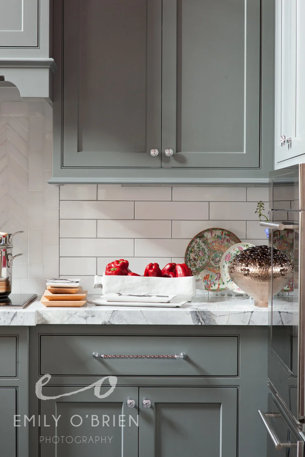 I loved her mix of texture, glamour, traditional and modern all in one swoop. Notice the long subway tile next to the marble backdrop over the stove.
