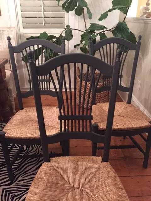 Chairs Painted. Iron Ore by Sherwin Williams. I am totally in love with this color right now.