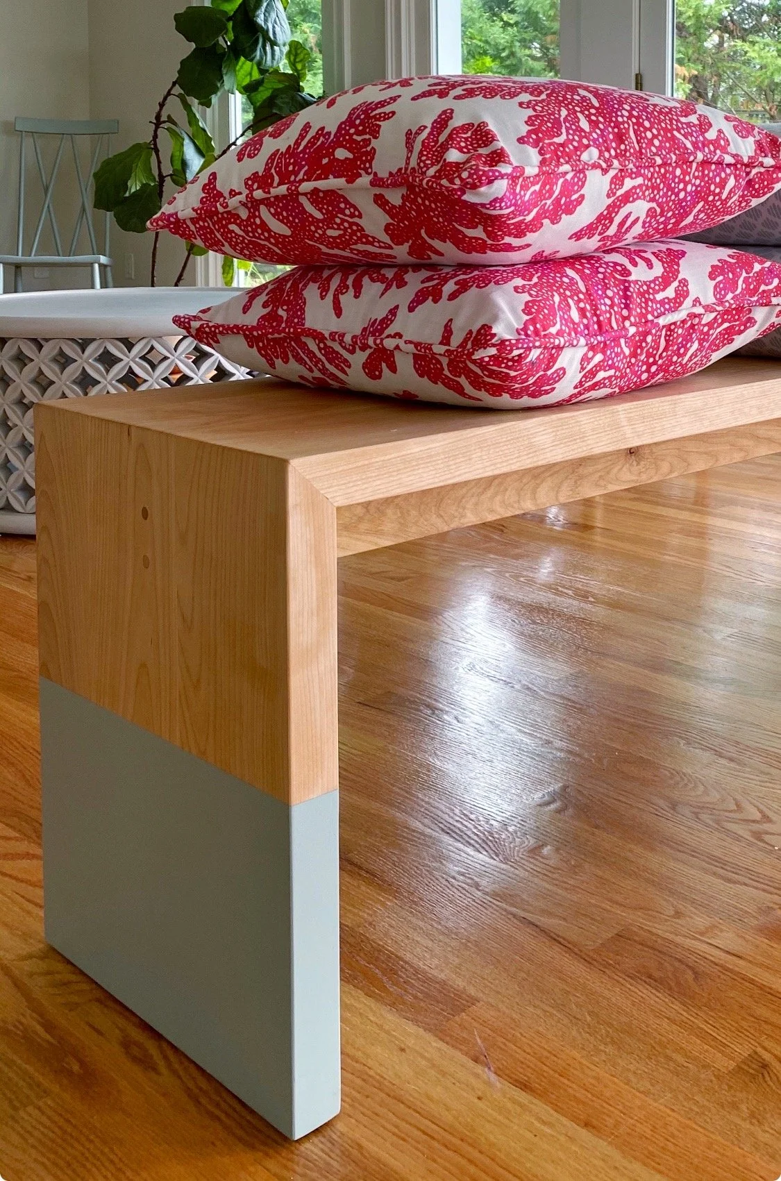 For the bench to go along our “coastal” painted chairs we “dipped” the base in the same color. This added such a coordinated yet fun and modern feel that we could not have gotten from the catalogue or showroom. Doesn’t it just make you smile?